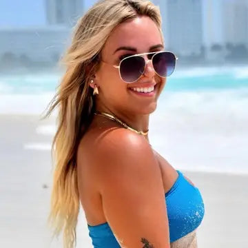 ACE Sunglasses by DAX Eyewear Aviator sunglasses provide an iconic look. Both women and men can rock these sunnies. The ACE shades come with sleek metal frames and UV 400 protection lenses. They are lightweight so they don't fall down your face as you're strutting around town. With 8 color options from blacked-out lenses on black frames to rose gold lenses on gold frames, you can make a statement with whatever you're doing that day. Hair-Friendly, Tangle-Free, and Easy to Clean Throw your hair up in any style and they won't get stuck! Seriously, the nose pieces are smooth and sit flush with the frame so you aren't yanking out your perfectly styled hair.