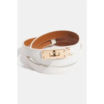 Introducing the Adjustable Turn Lock Belt for women, featuring stunning thin design and intricate details for expressing your fashion identity. With its adjustable length of 40 inches and chic white and gold color, this belt is a must-have for any wardrobe.