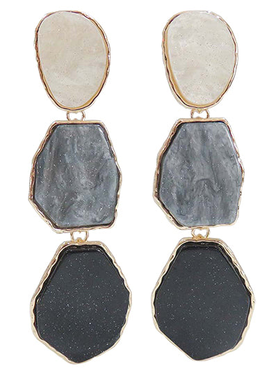 These Black and Grey Gemstone Dangle Earrings blend versatile neutral tones with subtle gold accents, making a bold yet elegant statement. The combination of black, grey, and white gemstones adds depth and sophistication to any casual outfit, while the gold setting offers a touch of warmth and shine. Perfect for everyday wear or special occasions, these earrings bring effortless style and timeless charm.