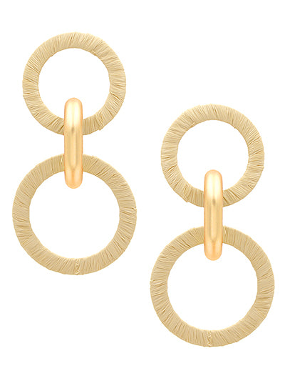 These Natural Raffia Wrapped Link Earrings bring casual charm with their earthy raffia wrapping and subtle gold accents. Lightweight and stylish, they add a touch of natural elegance to any outfit, perfect for everyday wear or a relaxed outing.