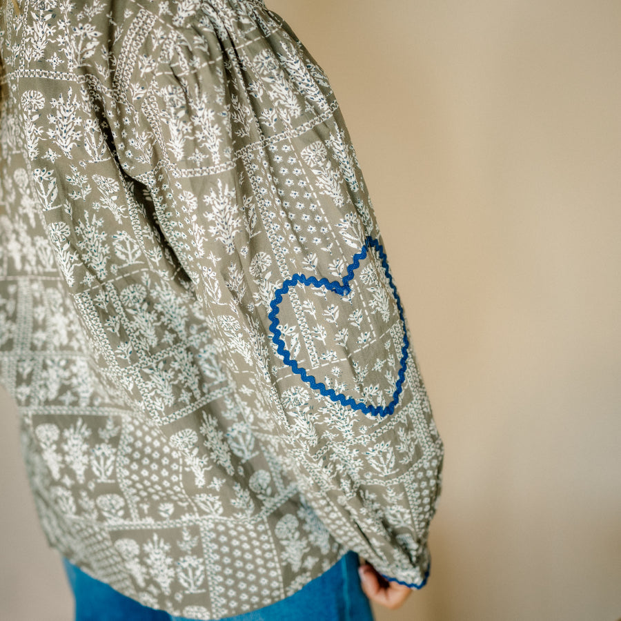 This floral print long sleeve top adds a charming touch with its heart-shaped pocket, outlined by playful ric rac trim. The tie front closure enhances its casual style, making it a perfect layering piece for everyday wear. Comfortable and cute, it’s ideal for adding a subtle pop of personality to your outfit.