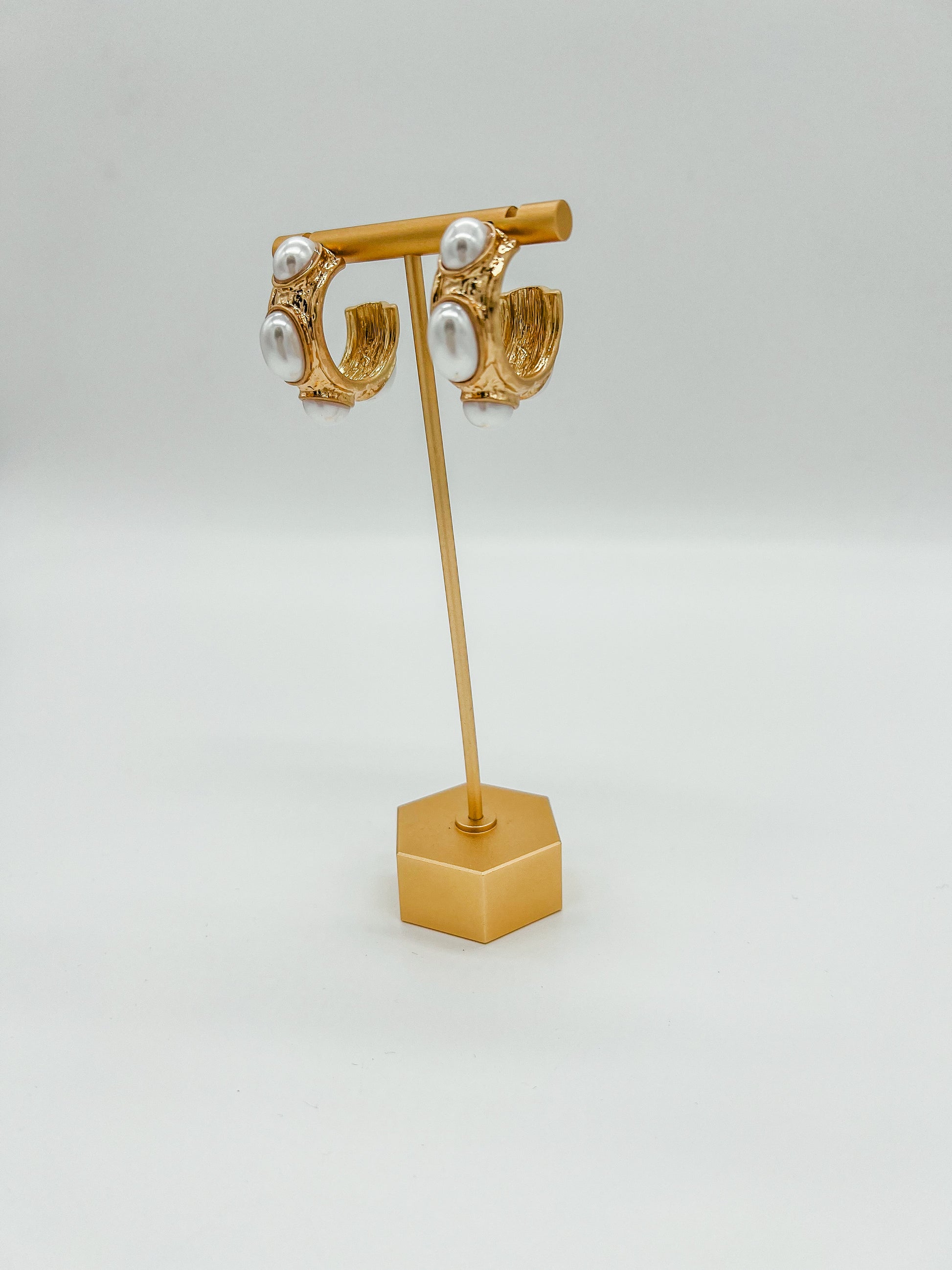 Indulge in opulent elegance with our Chunky Pearl Hoops. The textured gold hoops add a touch of sophistication, while the open design showcases lustrous pearls. Elevate any outfit with these luxurious statement earrings.