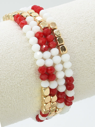 - 4 PCS GLASS, METAL BEAD MULTI STRAND STRETCH BRACELETS
