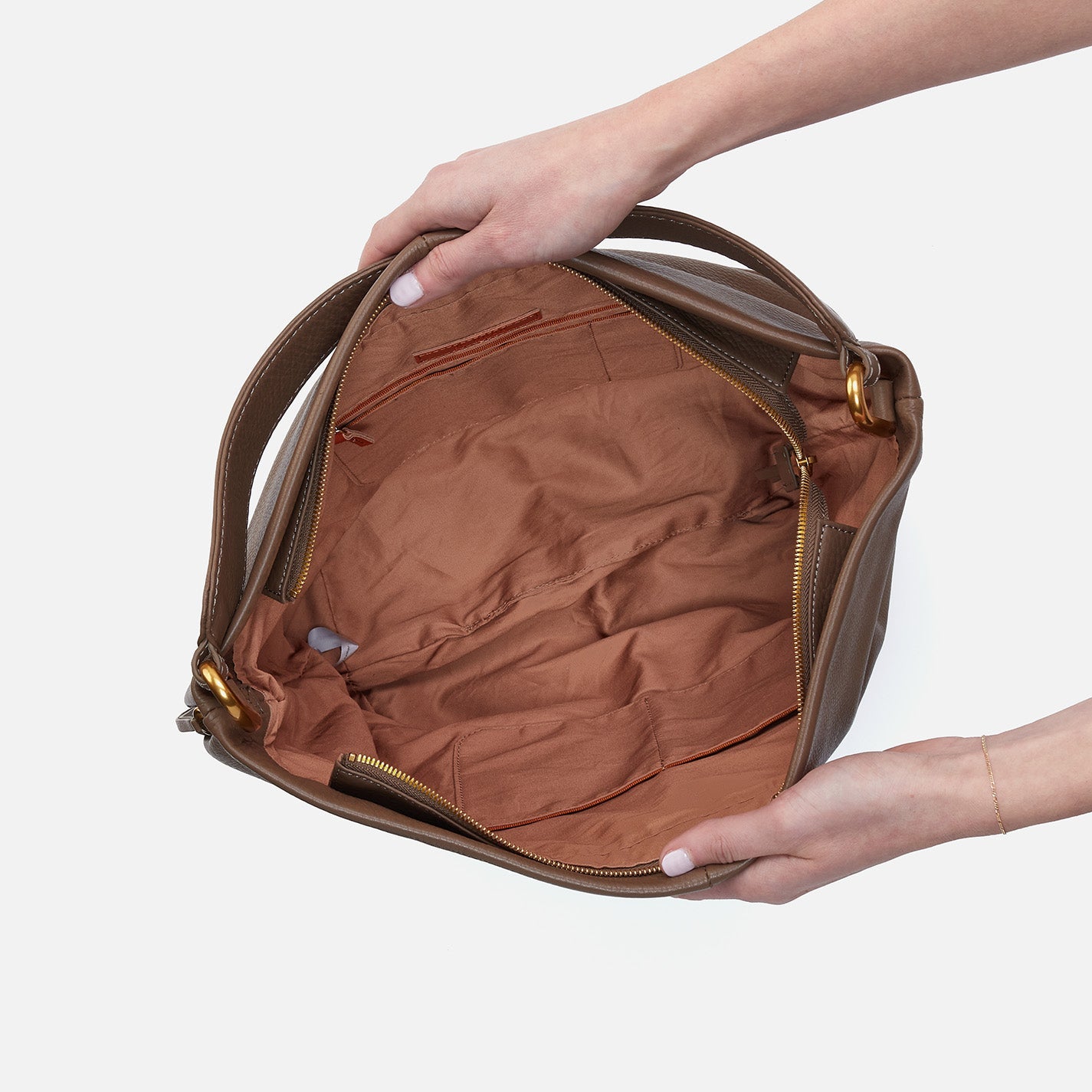 Our newest take on the classic hobo shape. You'll want to take the Harley Hobo with you everywhere you go. Crafted in Pebbled Leather.