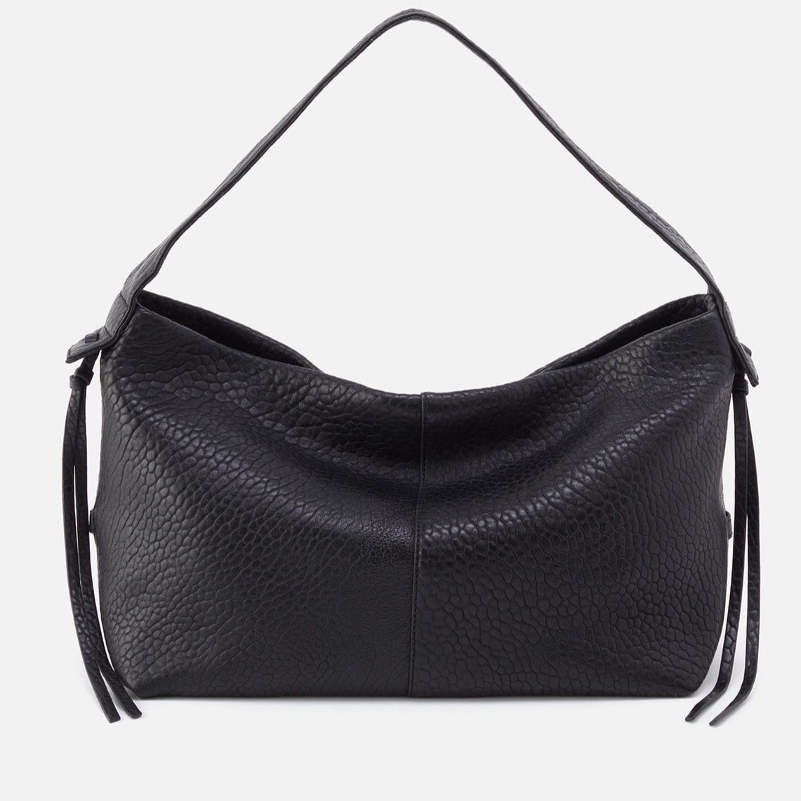 The ultimate hobo bag with a soft and slouchy shape and leather tassel details. Crafted in Bubble Pebbled Leather.