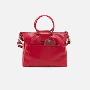A medium satchel with a removable strap. Sheila Medium has a back slip pocket for your phone, a spacious interior with pockets for planning and plotting, a removable strap and circular top handles.