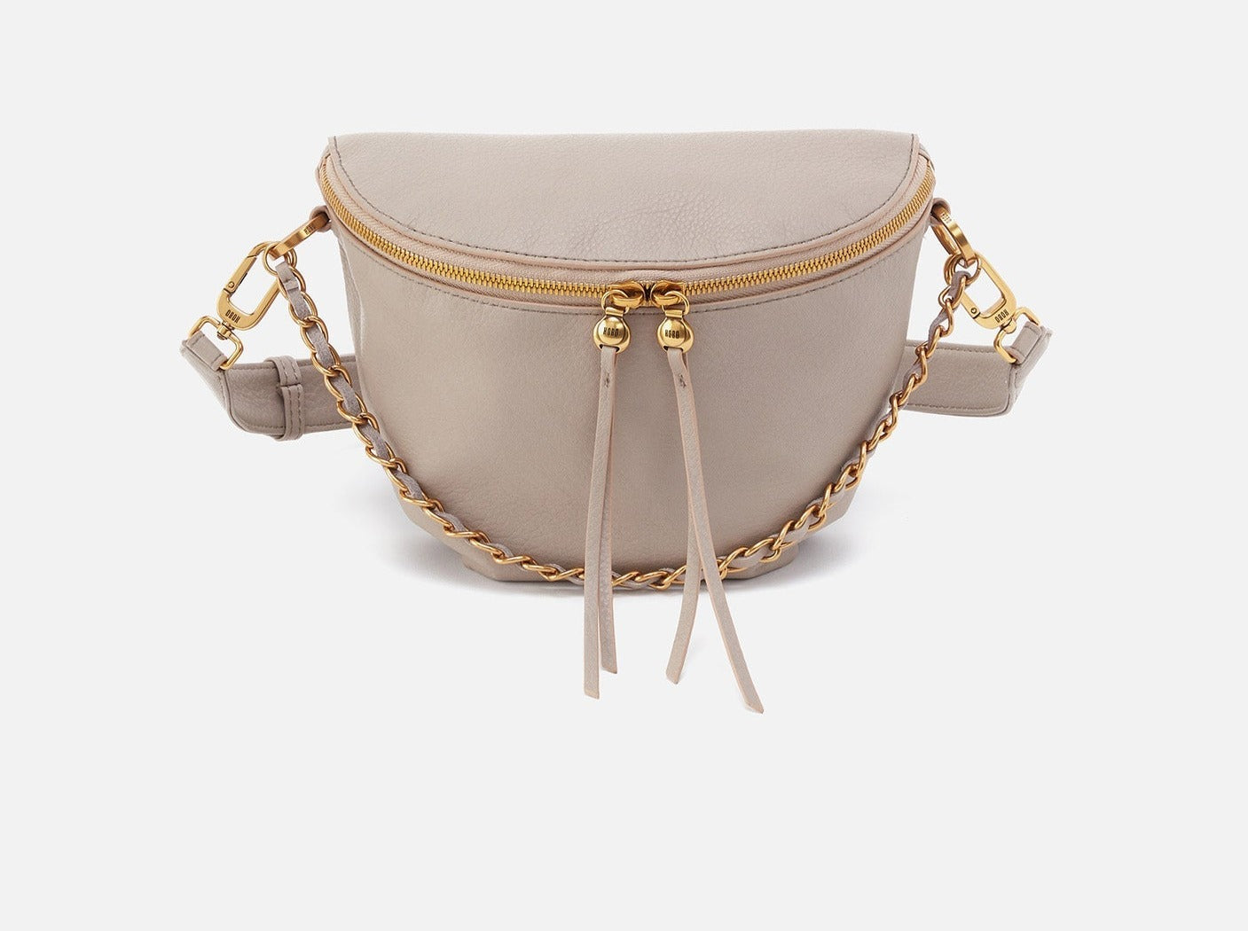 This statement-making belt bag has tassel zipper straps and a beautiful leather and chain detail for a luxe look. Crafted in Pebbled Leather.