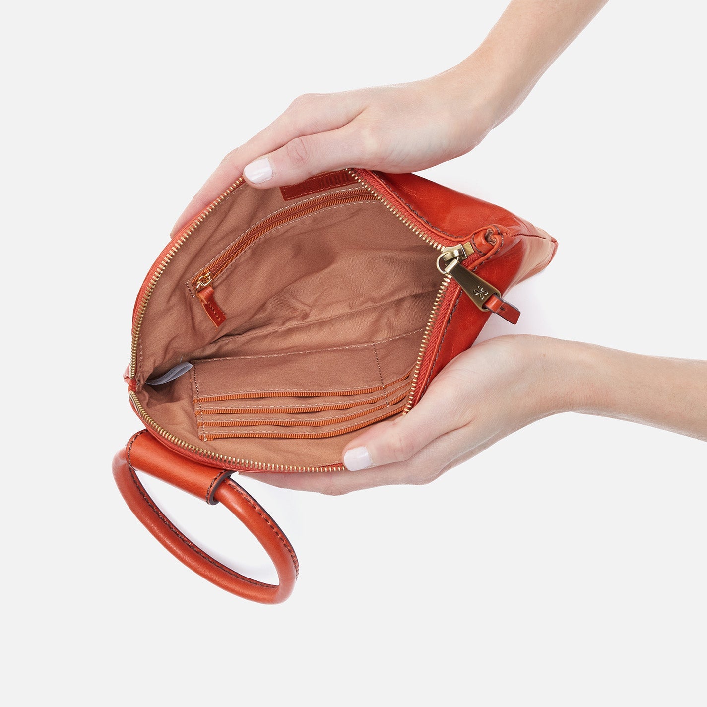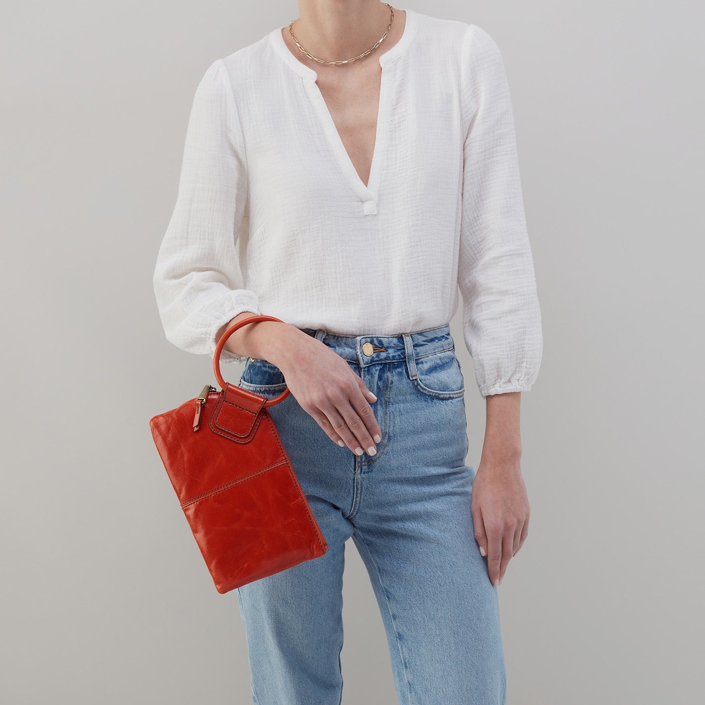 A HOBO icon and best seller, Sable is our circular handle clutch made for grab-and-go moments. Crafted in Polished Leather: Crafted in a hand-selected, full-grain Italian leather and finished with a high-gloss shine.