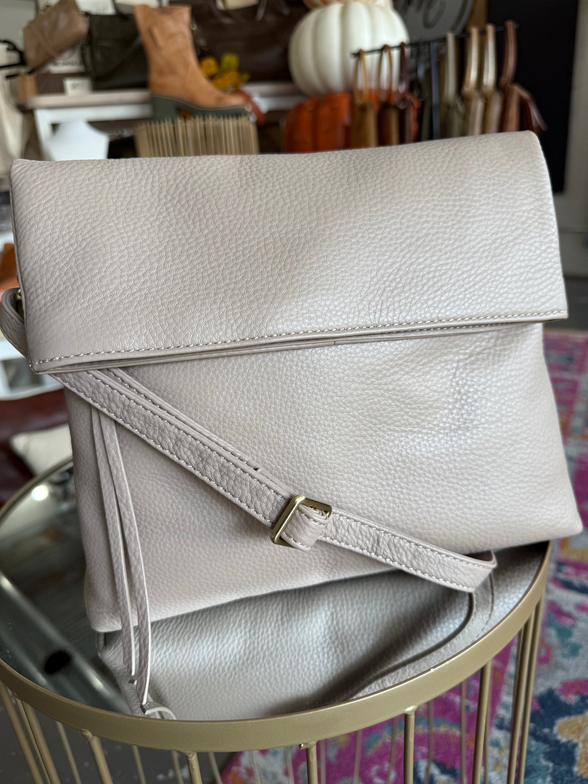 Our take on the classic foldover crossbody that can also double as an oversized clutch.