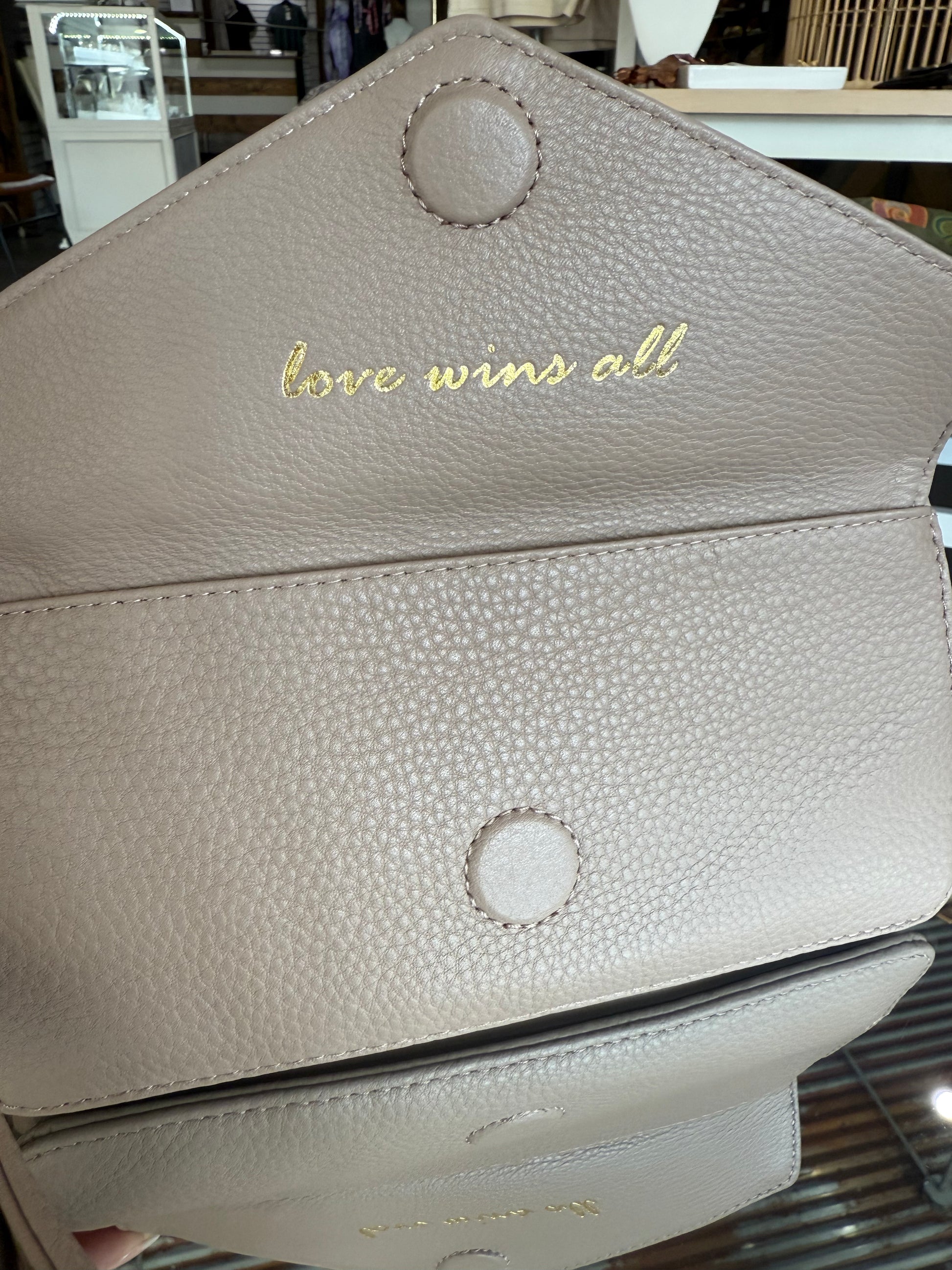 Open your wristlet and you’ll find the mantra to live by: Love wins all. Goldie is meant to carry a little more than the essentials and uplift your spirit at the same time.