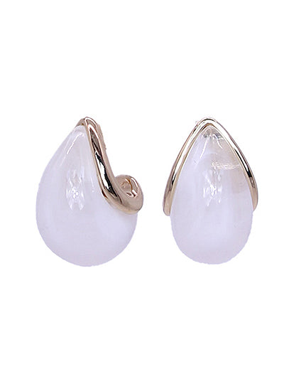 Marbled Teardrop Earrings - White