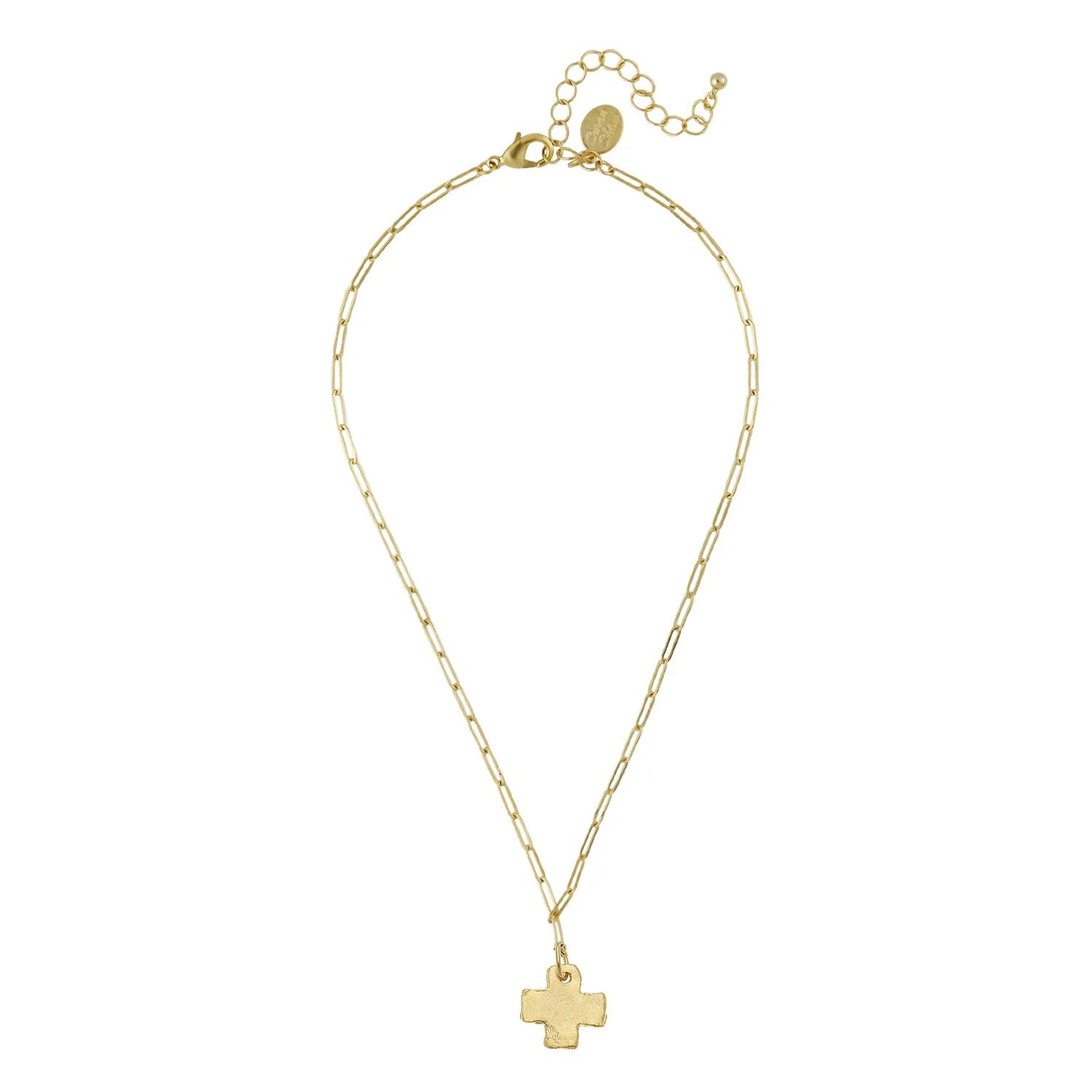 This hand-molded mini cross has been a Susan Shaw favorite for decades. We've paired it with our small paperclip chain for a fresh look.
