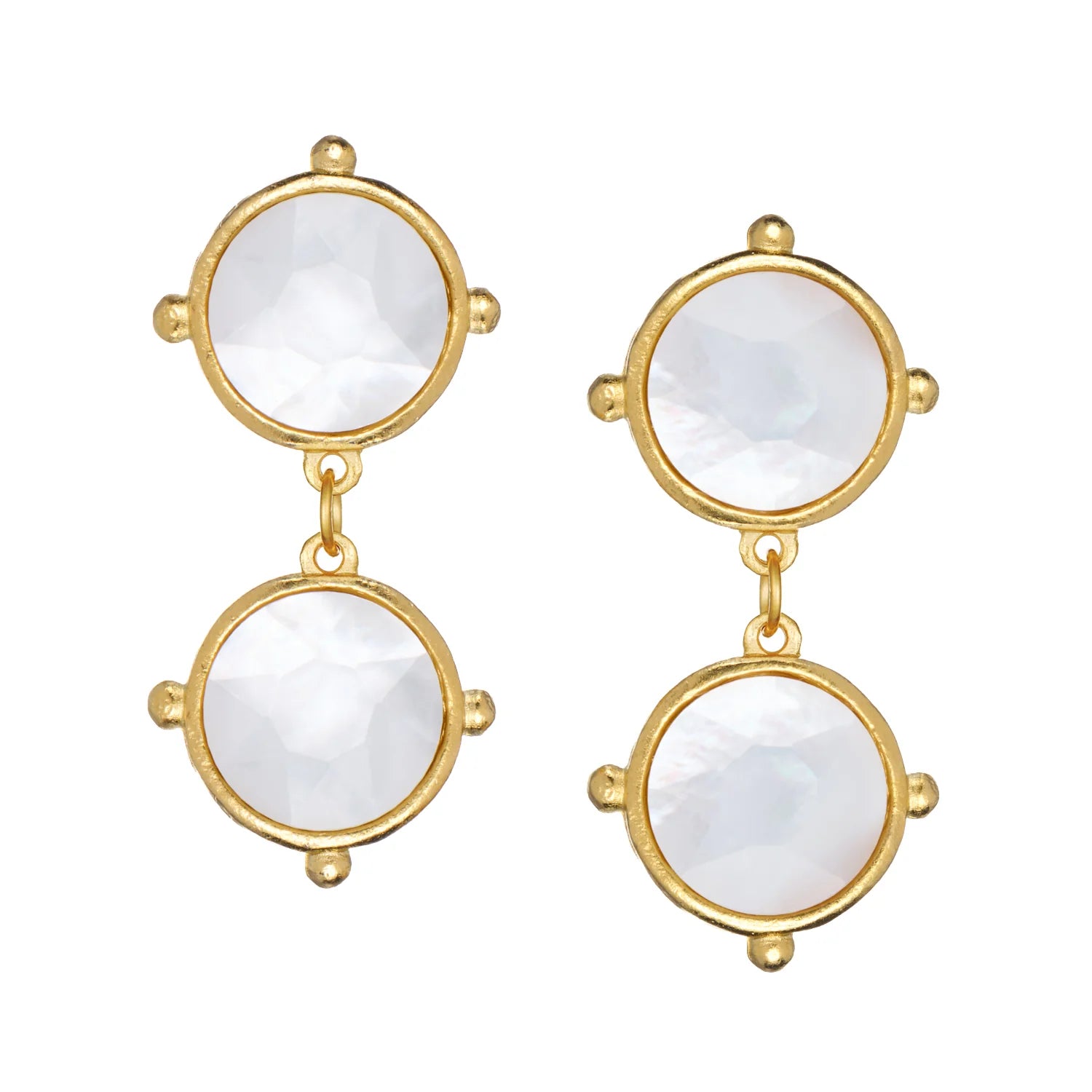 Inspired by the Princess of Wales and her timeless style, the Kate Drop Earrings are just the finishing touch your outfit needs. Featuring genuine Mother of Pearl specially cut to fit in our soirée setting, these earrings have a subtle iridescence and dangle elegantly around the face to add movement while remaining lightweight. The glistening white Kate Drop Earrings would be perfect for bridesmaids gifts, bridal season or your next wedding guest look.