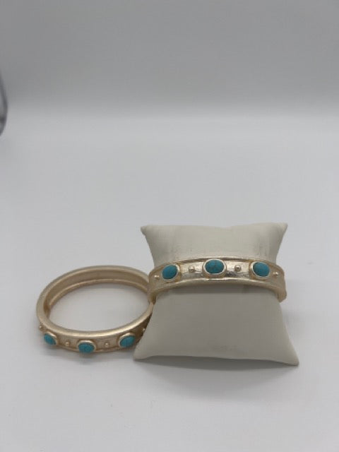 "Effortlessly elevate your style with our Turquoise Hinge Bangle Bracelet. With a satin gold finish and adorned with stunning turquoise beads, this bracelet exudes sophistication and exclusivity. The unique hinge closure adds both functionality and elegance to this must-have accessory."
