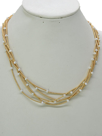 Elevate your everyday look with this White Bead Multi-Strand Necklace. Featuring delicate gold strands paired with crisp white beads, it creates a stylish layered effect that's perfect for casual wear or stacking with other favorites. This versatile necklace adds a subtle touch of elegance and texture to any outfit.